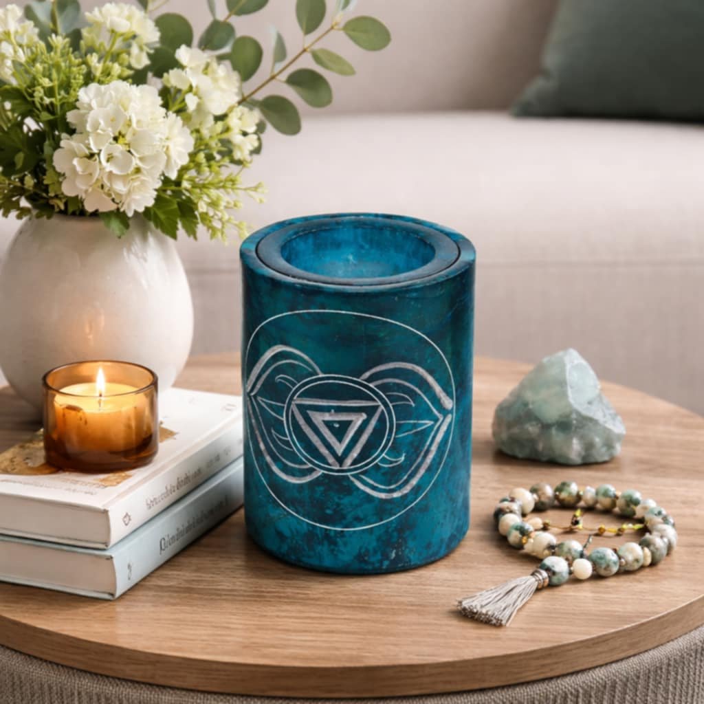 Aromalampa vyřezávaná Tyrkysová čakra je spojena s komunikací, vnitřním klidem a vyjadřováním sebe sama. Jednou z hlavních předností této aromalampy je její vyřezávaný design, který připomíná čakru. Čakry jsou energetická centra v těle a každá z nich ovlivňuje různé aspekty našeho života. Je vyrobena z kvalitního materiálu mastek, která mu dodává elegantní vzhled který je pro svou pevnost a odolnost velmi oblíbený. Díky tomuto materiálu je nejen krásná, ale také snadno udržovatelná .Měří 9x6,5x6,5 cm, takže se snadno vejde na každý stůl či poličku. Můžete ji umístit na stůl do obývacího pokoje, na noční stolek v ložnici, nebo na pracovní stůl ve vaší kanceláři Její využití je široké například při meditaci, relaxaci, či večer po náročném dni, nebo při romantické večeři. Díky svému kompaktnímu provedení ji můžete vzít sebou kamkoliv na dovolenou, na služební cestu, když budete potřebovat okamžitou dávku uklidňující energie. Je také skvělým dárkem pro milovníky aromaterapie a esenciálních olejů.