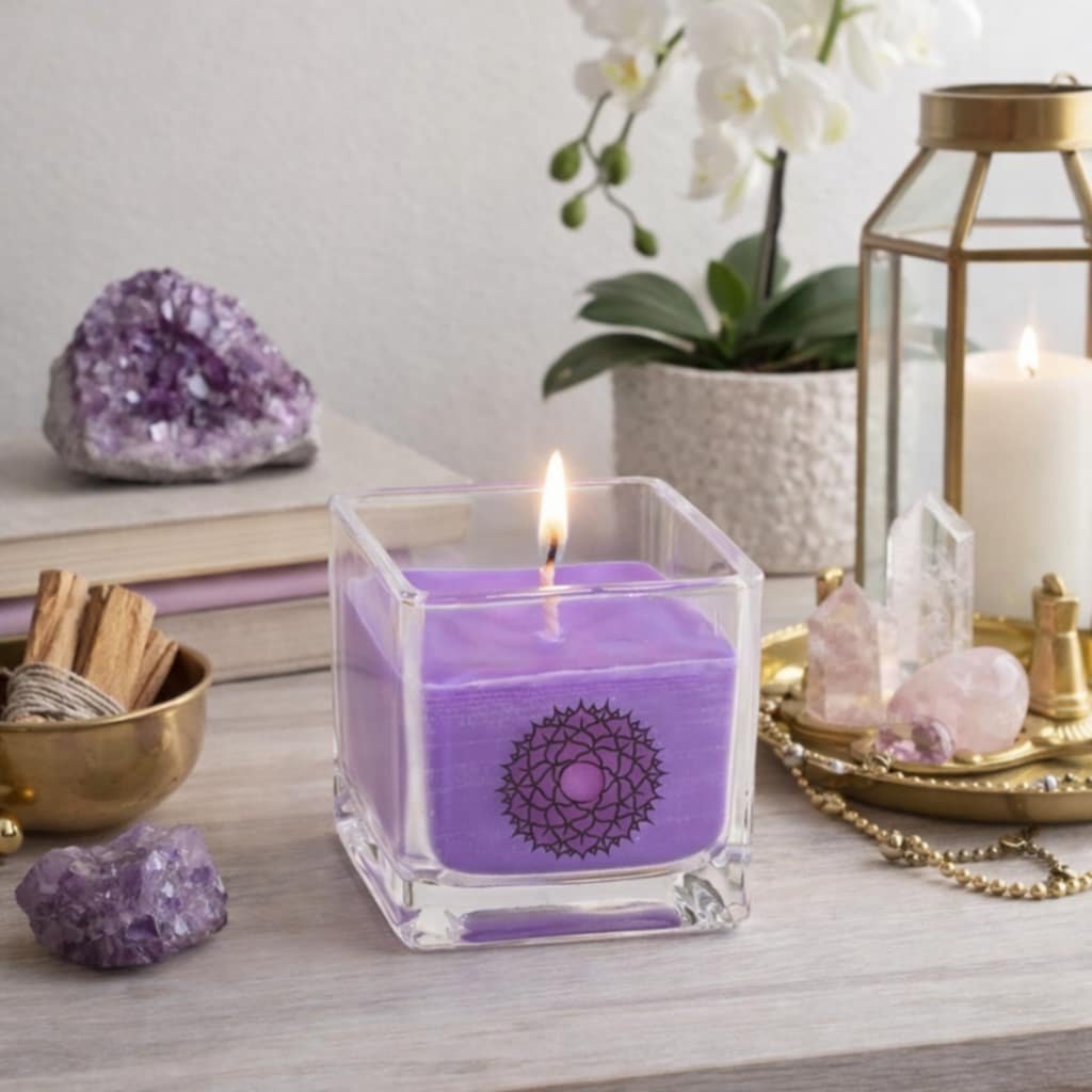 Čakrová vonná svíčka ve skle-7.čakra