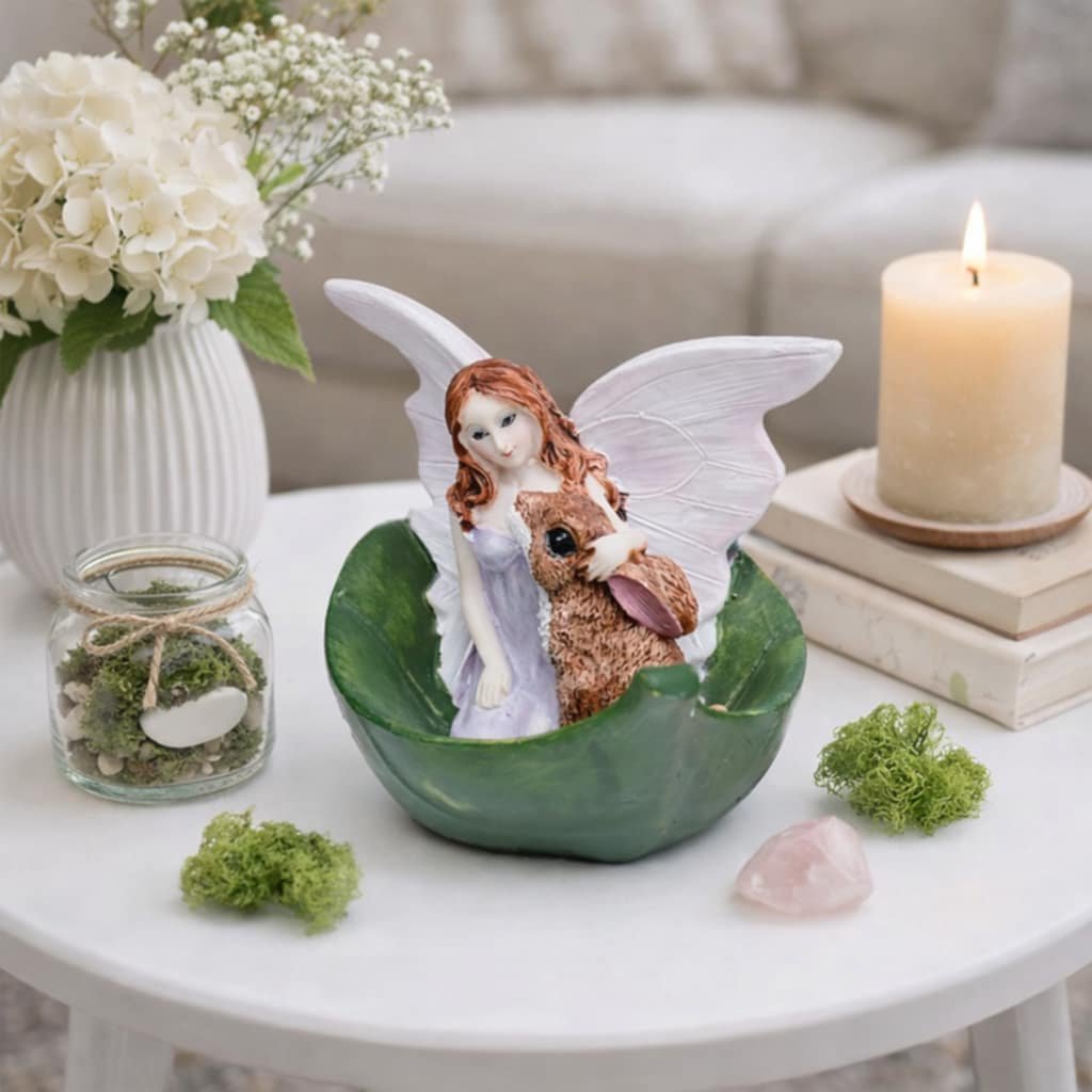 Z vílího světa k nám připlouvá šeříková víla na své listové loďce ochránkyně lesa a láskyplně objímá malého zajíčka. Krásná vílí dekorace vytvoří v každém interiéru nádhernou mystickou atmosféru. Krásný dárek pro všechny milovníky světa Fantasy.