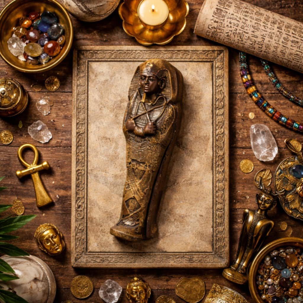 Soška egyptská schránka Sarkofág je vyrobena z kvalitní pryskyřice, což jí dodává pevnost a odolnost Její velikost 10cm ji činí dostatečně výraznou, aby přitahovala pozornost, ale zároveň dostatečně kompaktní, aby se vešla do každého interiéru Symbolika faraonů, pečlivé detaily a autentický vzhled z něj činí skvělý doplněk pro sběratele, milovníky historie i originální interiérové dekorace.