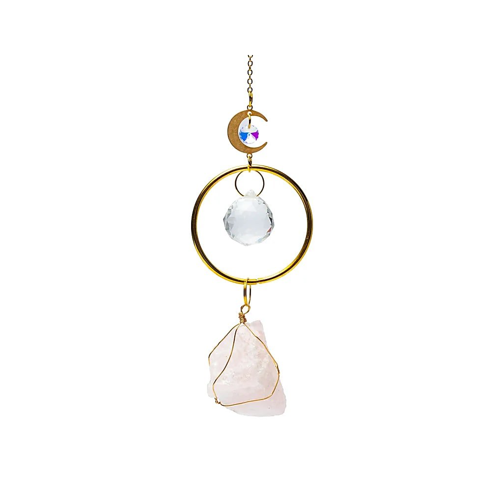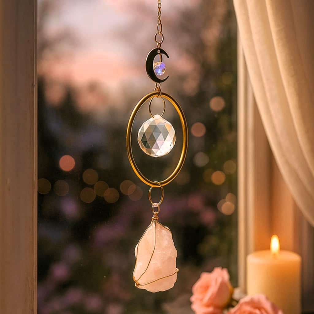 Vneste do svého domova kouzlo světla a harmonie s tímto elegantním lapačem slunce s motivem Měsíce a růženínu.