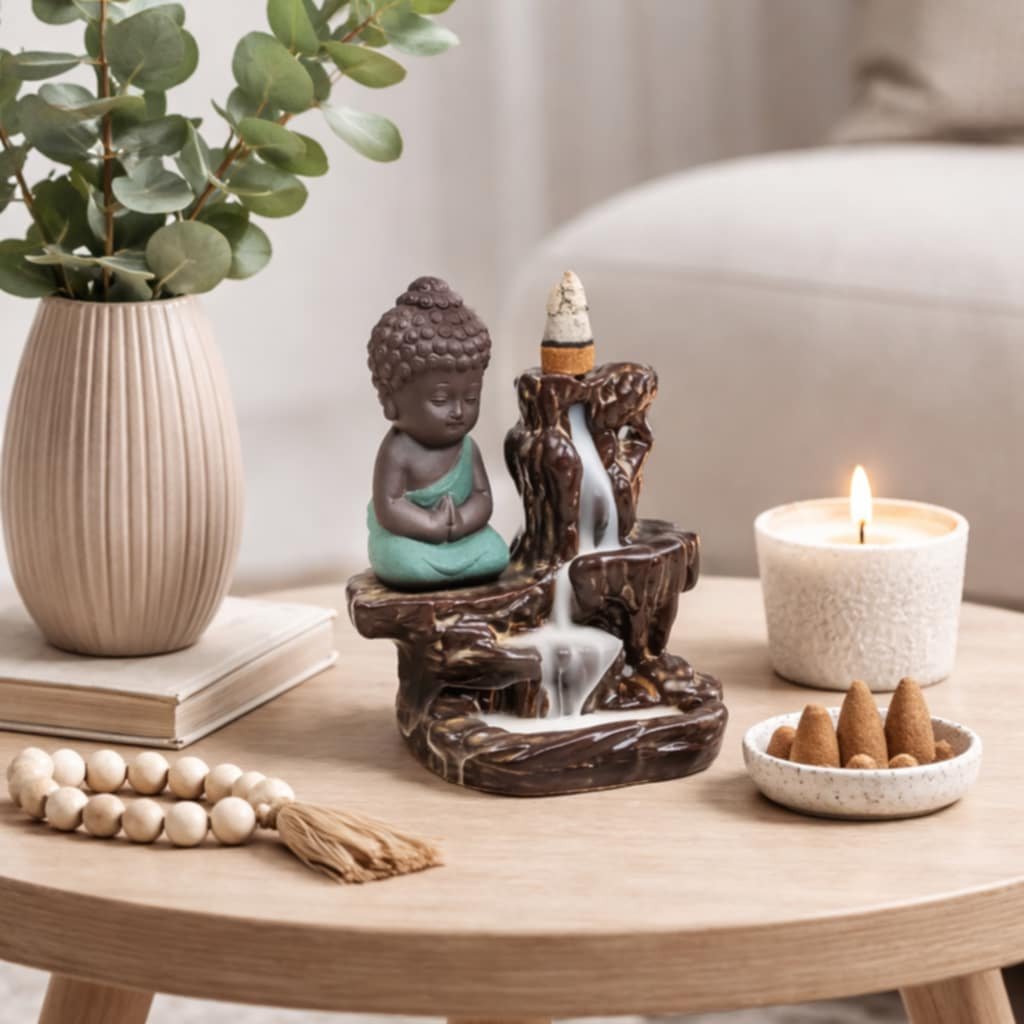 Kouř z tohoto kadidla padá dolů jako vodopád a vytváří mlhu kolem stojánku/hořáku. Mlha může na stojánku zanechat stopy, které snadno odstraníte vlhkým hadříkem. Nikdy nenechávejte hořet bez dozoru.