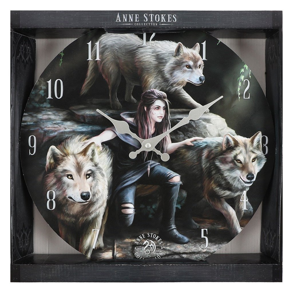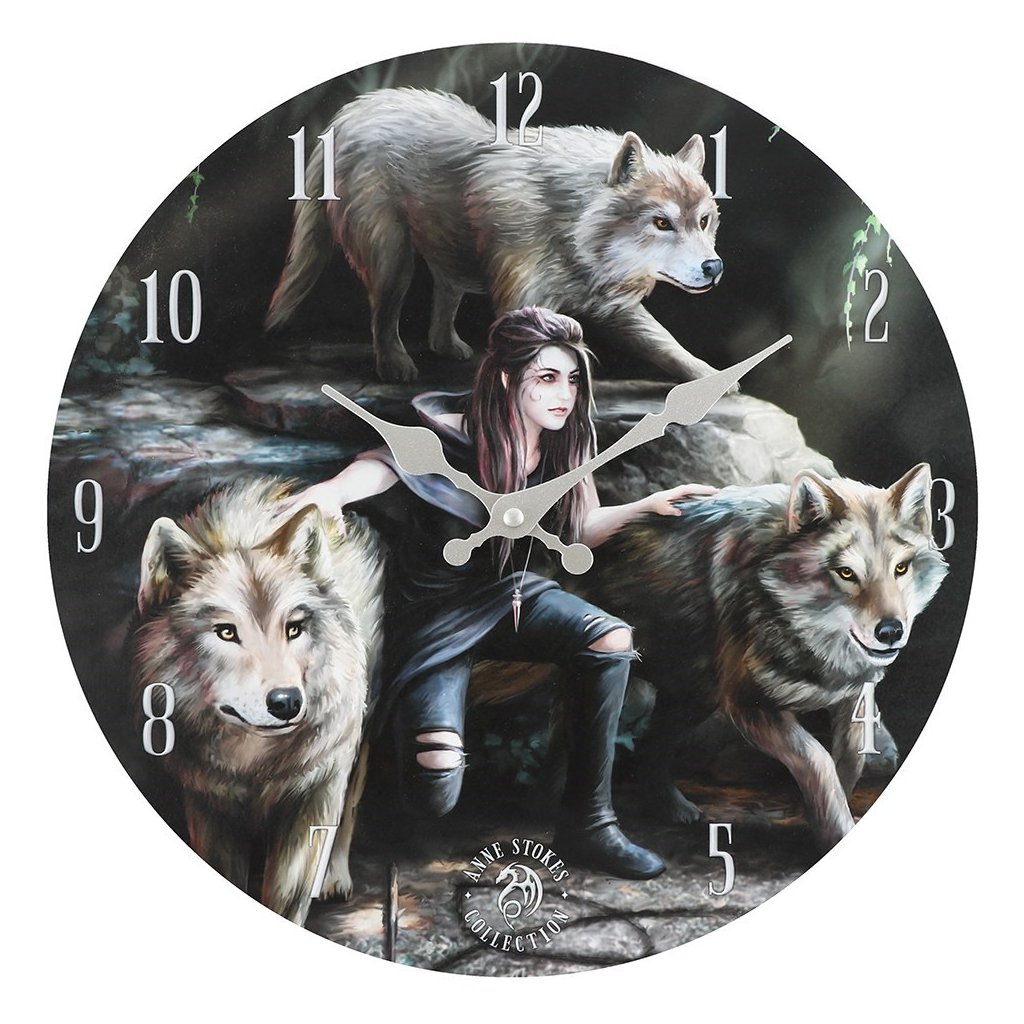 Luxusní nástěnné hodiny Síla tří vlků. Design s neopakovatelnou mystickou atmosférou navrhla uznávaná umělkyně Anne Stokes.Krásná mladá elfka obklopená třemi šedými vlky, vyřezala na podlahu symbol keltské trojice známý jako Triquetra, aby je ochránila a provázela nebezpečím, které na ně čeká. Nevšední dárek pro všechny milovníky magie a fantasy stylu.