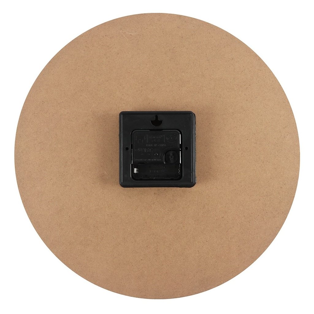 Hodiny jsou vyrobené z potištěného laminátu a dřeva, na zadní straně je připevněn strojek na baterii 1 AA, která není součástí balení.