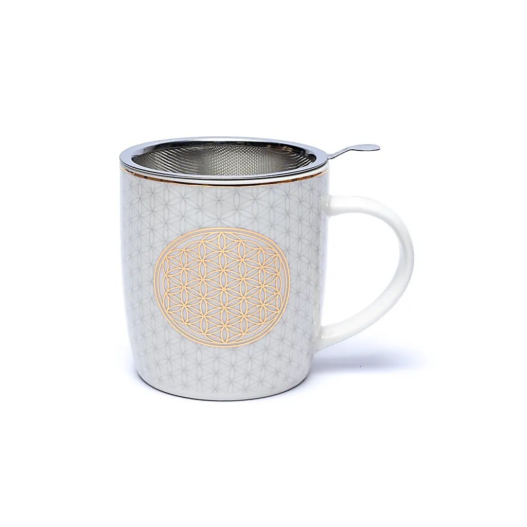 Nádherný porcelánový bílý hrnek na čaj s nerezovým sítkem Květ života v dárkové krabičce, Květ života symbolizuje jednotu všeho ve stvoření života. Ukazuje, že jsme všichni modelováni podle stejného plánu a je silným symbolem v posvátné geometrii. Je ideální pro všechny milovníky duchovna a mystiky k pití horkých nápojů, jako je káva, čaj, nebo horká čokoláda. Jeho unikátní design, dodává každému pití zvláštní atmosféru a přidává mu kousek tajemna.