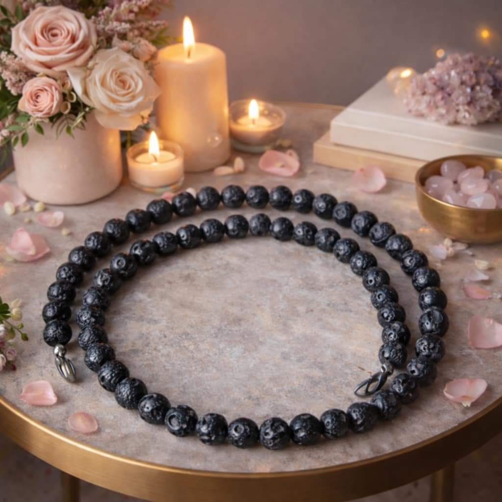 Náhrdelník Láva kuličky je exkluzivní šperk, mystickým kamenem s vysokými spirituálními vibracemi a silnou očistnou a léčivou mocí, Náhrdelník má jemný a elegantní design, který zvýrazňuje krásu lávového kamene .