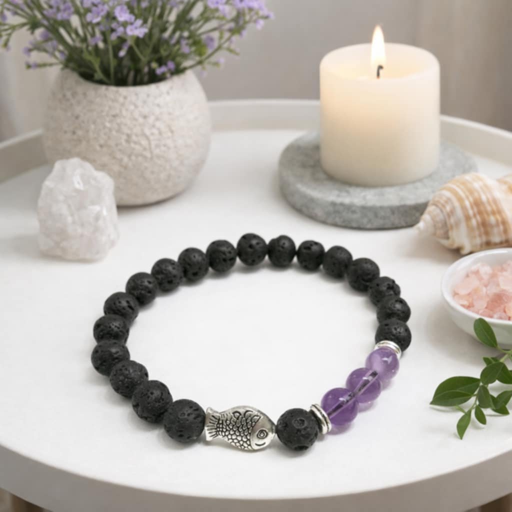 Tento úžasný Lávový náramek s ametystem a stříbrnou ozdobou rybky se hodí k jakémukoliv outfitu. A nejen to, oba má i jiné benefity.