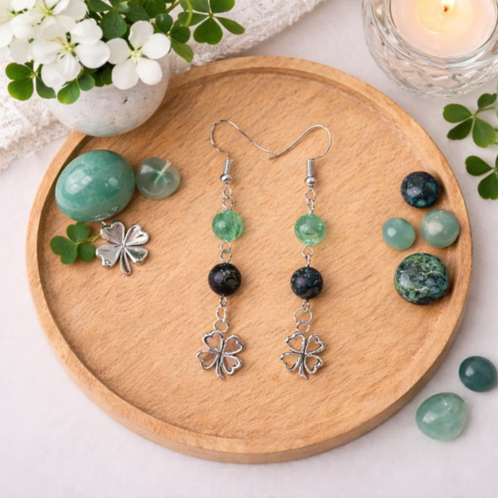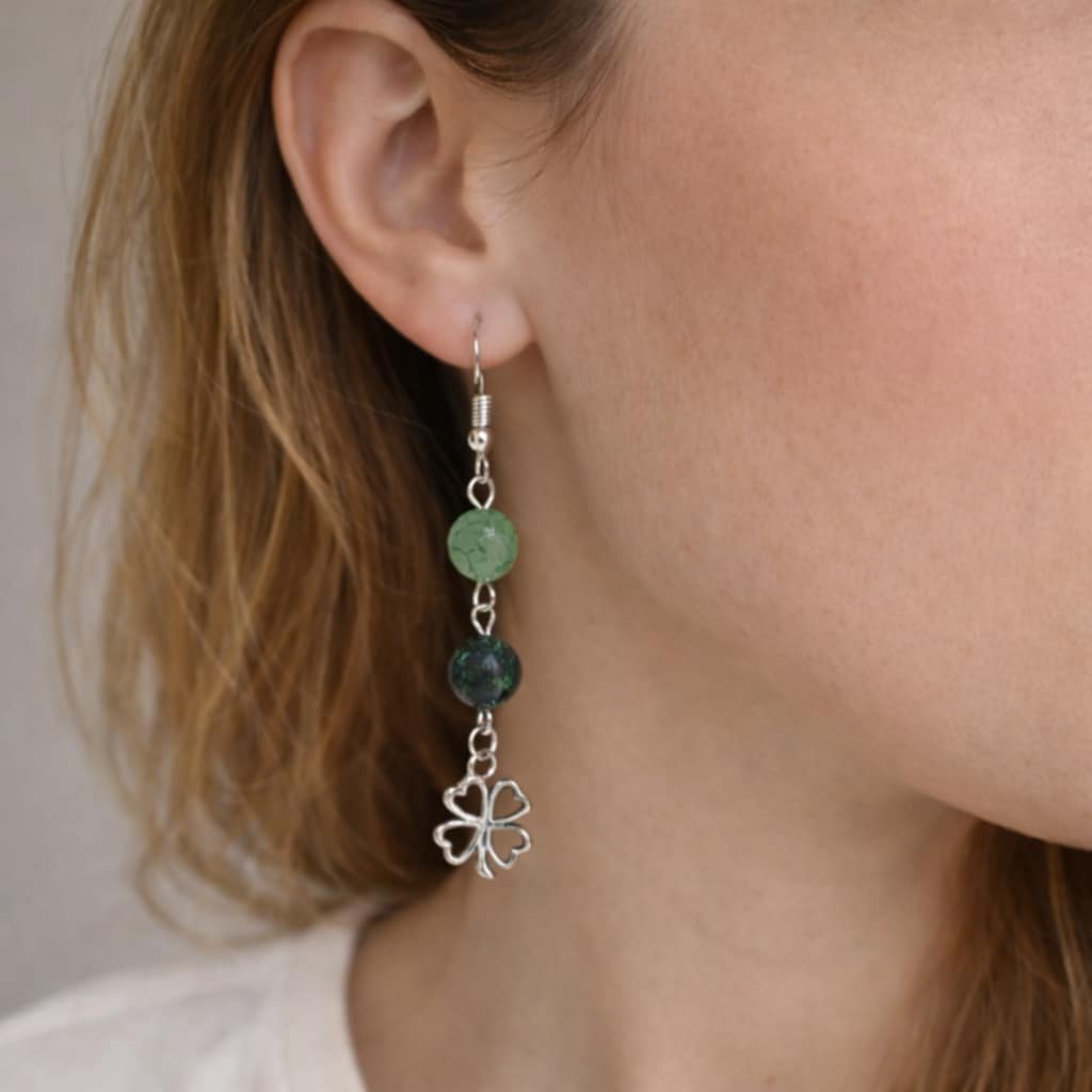 Objevte kouzlo ručně vyráběných náušnic Jaspis kambaba a Zelený avanturín s čtyřlístkem pro štěstí