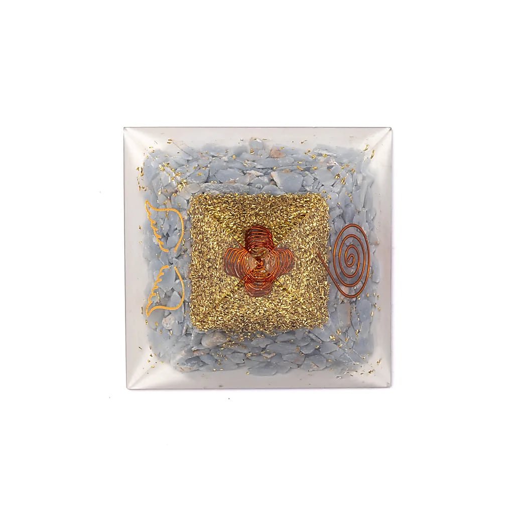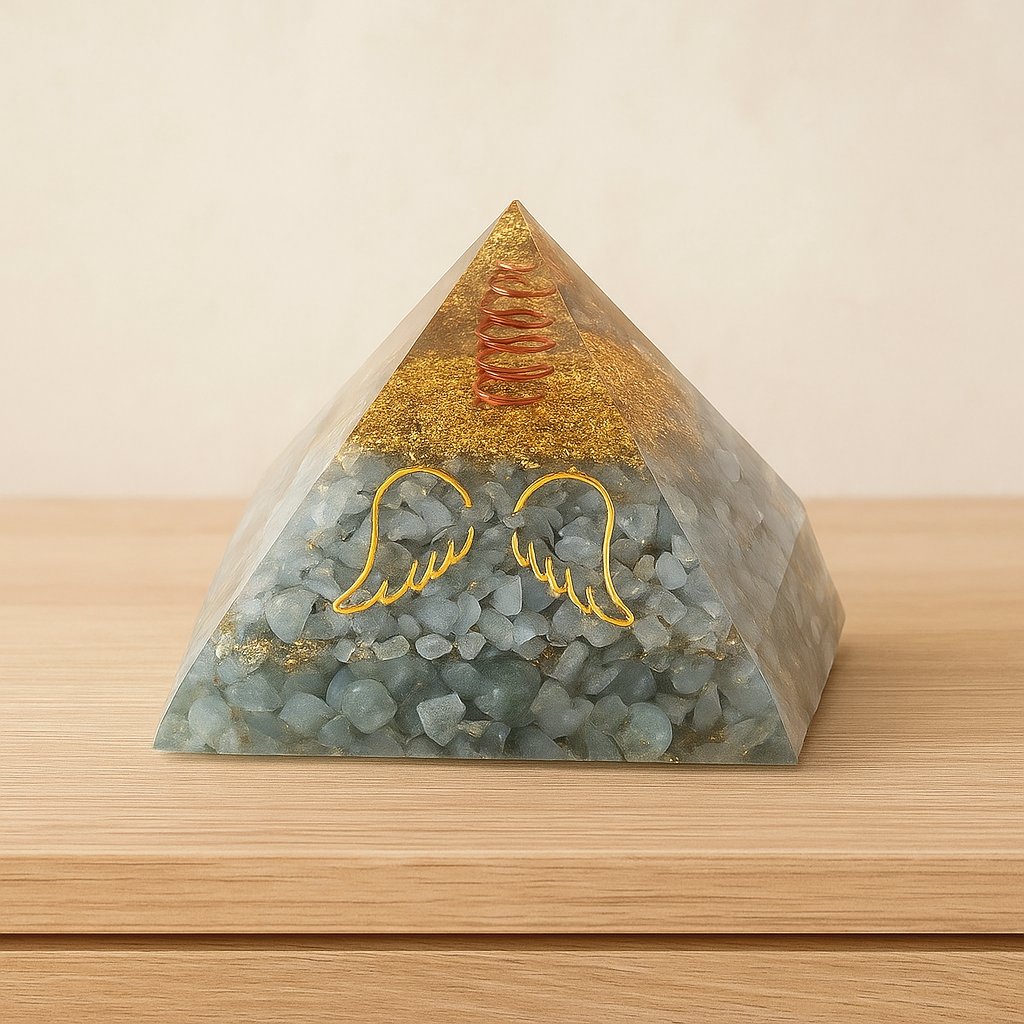 A je tu ještě jeden krásný benefit – orgonitová pyramida je propojena s magickým kamenem angelit, který uvolňuje stres, přináší vnitřní klid a podporuje spojení s vyšším vědomím i intuicí.