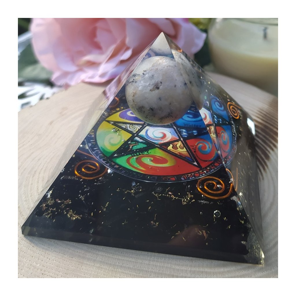 Proto tu máme pro Vás nádhernou orgonitovou pyramidu s černým turmalínem a opálem zasazeným v korunce pyramidy s magickým symbolem pentagon, kterou si zamilujete hned na první pohled a zároveň Vás mile překvapí svými přínosnými účinky na tělo i mysl mezi které patří: