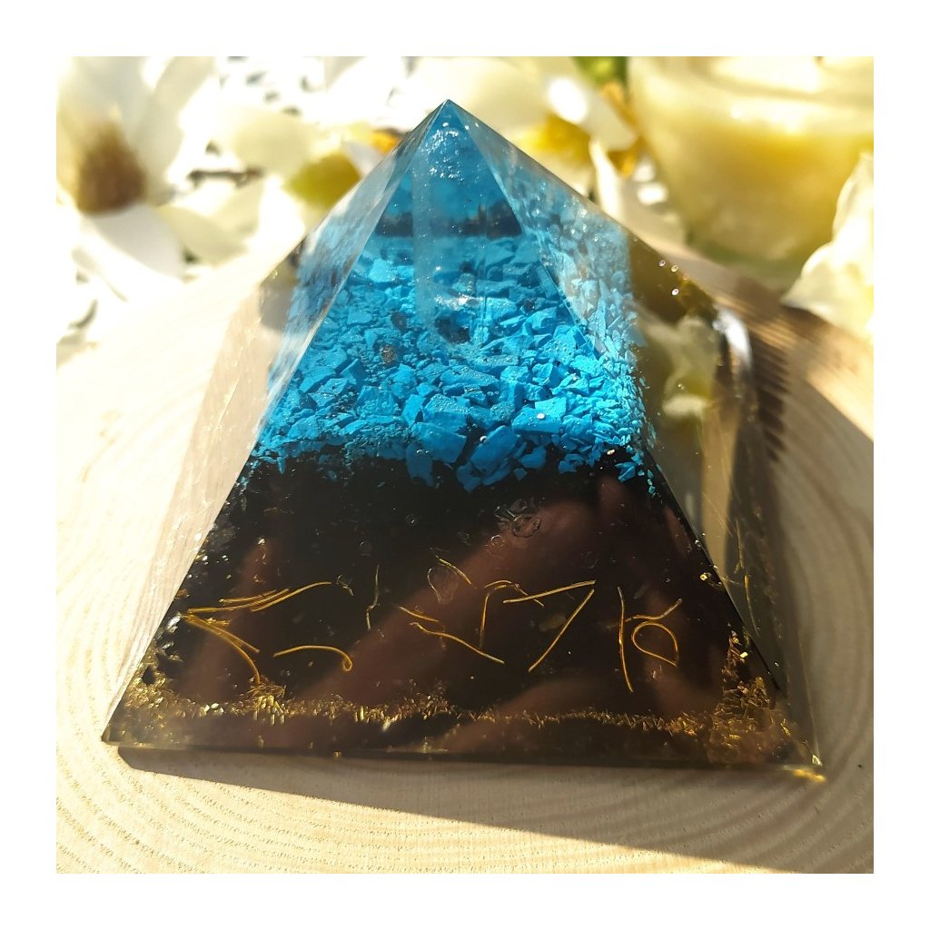 Pyramida orgonit Tyrkys a Černý Turmalín ,energie ochrany a komunikace