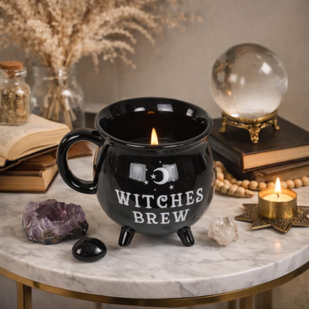 To vše máte na dosah se sójovou svíčkou čarodějnický černý hrnek ve tvaru kotlíku, který má na přední a zadní straně nápis „Witches Brew- Čarodějnice vaří“ a je naplněn vysoce kvalitním, ekologickým sójovým voskem, který je provoněný neodolatelnou vůní santalového dřeva a vanilky. Originální kouzelná svíčka se jistě rázem stane nepostradatelnou součástí Vašich magických rituálů pro doprovodná kouzla ochrany a vedení. Černé svíčky patří neodmyslitelně k obřadům zapuzení zla, strachu, nemocí a představují nejmocnější magickou ochranu.