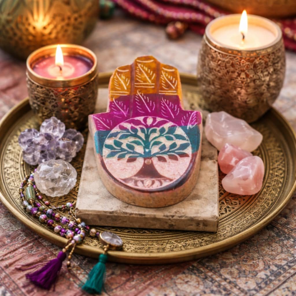 Pořiďte si originální stojánek na vonné tyčinky s motivem Hamsa a Strom života ,který je krásným spojením duchovní symboliky a estetiky,..