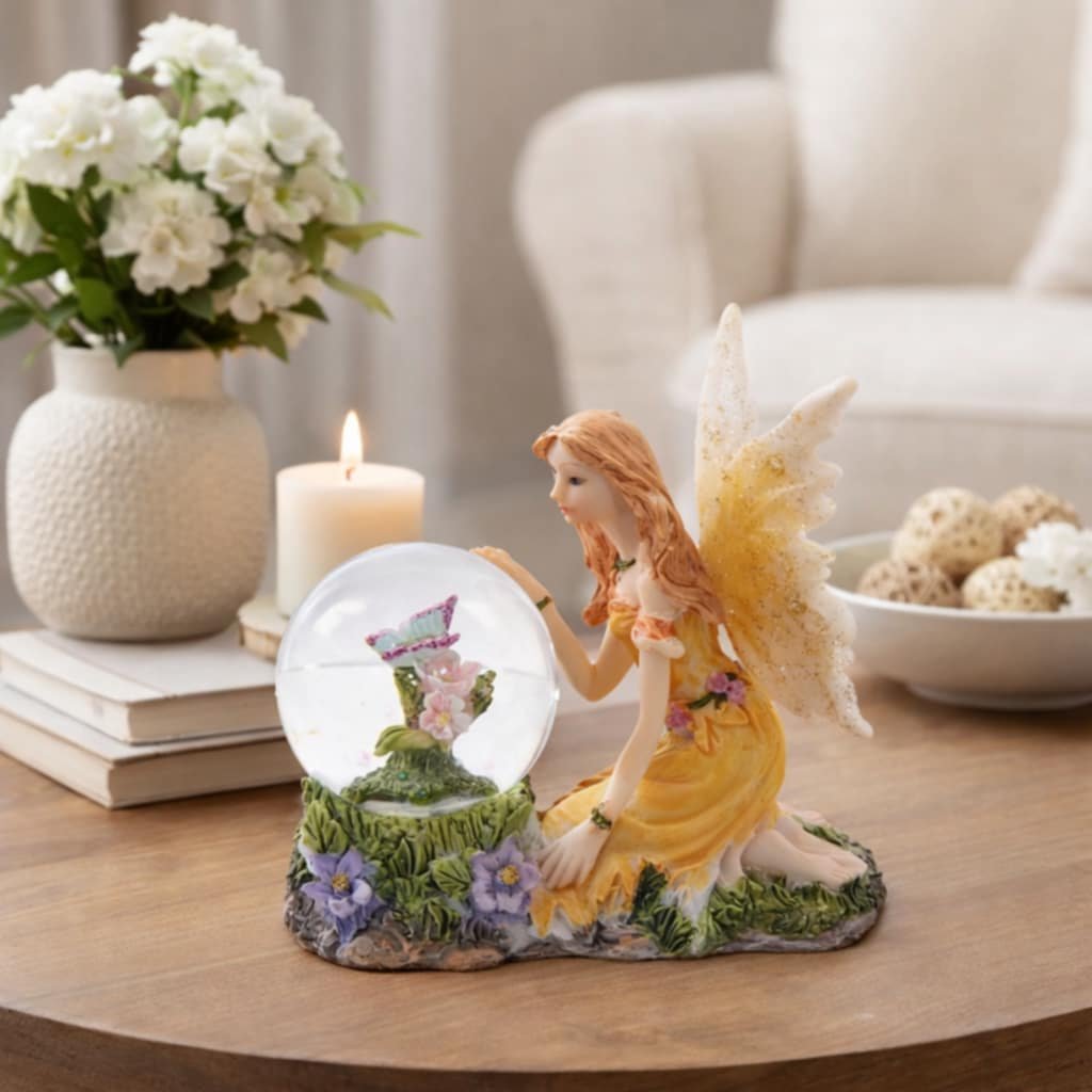 Nádherná malá vílí bytost v žlutých šatečkách sedící na rozkvetlém paloučku s motýlkem. Smíš ji spatřit, je-li Tvá duše čistá, Tvé cítění jemné a Tvé srdce otevřené. Nádherná dekorace do Vaší Vílí sbírky se stane okrasou každého interiéru. Mystický dárek pro milovníky Vílího světa.
