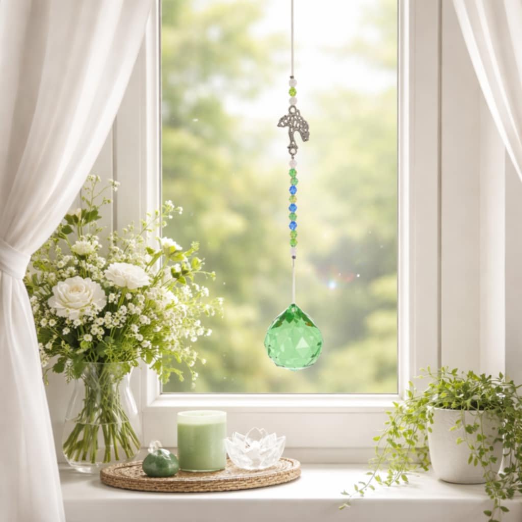 Velký Závěsný krystal s motivem Stromu Života spojuje krásu průzračného křišťálu s hlubokou symbolikou stromu života, Vytvářejíce tak nádherný a duchovní prvek pro váš domov. Tento krystal nejen zaujme svou estetikou, ale také přináší do prostoru pozitivní energii a sílu stromu života .Zelený křišťál zajišťuje krásu a čistotu, odrážející světlo a vytvářející jasný a lesklý efekt. Strom života je oblíbeným symbolem v pohanské kultuře a náboženství a představuje růst, spojení a nové začátky.